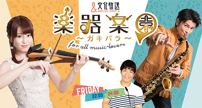 「楽器楽園~ガキパラ~ for all music-lovers」、通称「ガキパラ」は、「楽器」にフィーチャーした音楽情報生ワイド番組。「自分で楽器を演奏してみたい!」「久しぶりにやってみたい!」「楽器の話で盛り上がりたい!」という音楽を愛する人たちに向けた新しいテイストの番組で、毎週金曜日22:00から文化放送(AM1134/FM91.6)で放送中だ。