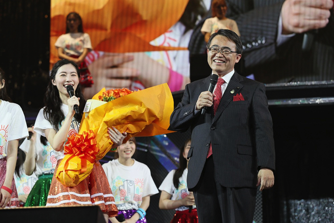 アンコールでは本日出演したSKE48メンバー65人にちなんだ、65本の薔薇の花束を持って愛知県大村秀章知事が登場。大村県知事は「6月16日、ナゴヤドームで、AKB48世界選抜総選挙が行われます。みなさん、(SKE48メンバーを)全員上位にしてほしい」とファンに呼びかけた。続けて湯浅劇場支配人からは昇格発表が行われ、「未来とは?」で地元名古屋での単独コンサートは幕を閉じた。