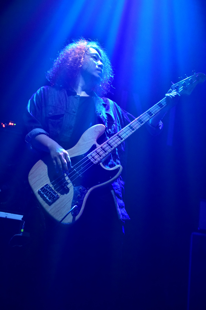 そうして“感情なんて消えてしまえ”と歌い放つ「Seeds」からは、久々にプレイするレア曲を連発。静パートから4つ打ちのダンサブルなサビへと激アツに展開していく「drop out」はコヤマのエモいギターが空間を支配。3人のフルテンションの演奏が歯車のように噛み合って、疾走感を生み出していく「invisible」を演奏したシーンでは、この曲がLyu:Lyu時代、唯一のアップチューンだったことを考えると、CIVILIANになって以降、バンバンアップチューンを生み出してきた彼らのこのバンドにかける思いを改めて痛感。また、その後にライブで初披露した新曲「ハッピーホロウと神様倶楽部」は、ハロウィンのようなダークファンタジーをイメージさせるバンドの新境地を拓いたナンバーで、ここではコヤマがどんどんフロアに近づいていってギターを弾き、そのあと「純市!」と叫ぶと、続いてベースソロが始まるという新しいスタイルのパフォーマンスも見せた。