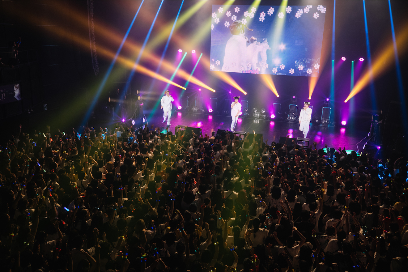 MCでは、そらちぃが「1部(昼の部)の「妄想」で大やらかししちゃった(3番の歌詞を1番で歌ってしまったそう)んで、(無事に歌えた)今は安堵感しかないです」と笑わせたほか、ツリメの新しい髪色にも触れ、3人は和気あいあいと軽妙なトークを繰り広げる。話題が夏の思い出になれば、「小学校の頃にハチに刺されたことかな」と回想するツリメに、「めっちゃ覚えてるわ!」と嬉しそうなそらちぃ。リクヲも「あれでしょ? 土手を登ってたらハチの巣を掴んじゃったんだよね(笑)」と続き、幼なじみらしく子供時代を覗かせる瞬間も。