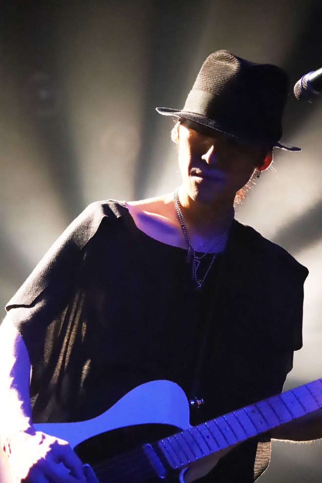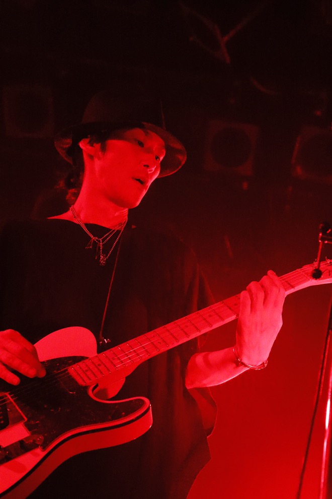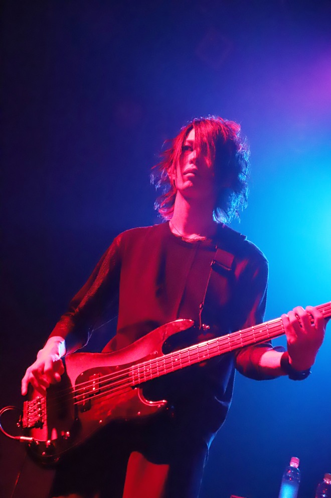 「25」で幕を開けたライヴはいきなりのドライヴ感に度肝を抜かれた。晁直とテツが一体となって轟かせるビートにaieのリフがガチガチに絡んでいく様は実にスリリングで、それは立て続けに放たれた「please god」でより色合いを深め、どちらかといえば退廃的な表情を覗かせていたはずの楽曲が瑞々さを宿してメンバーから解き放たれていく。その感覚になにやら経験したことのない新鮮な衝撃を覚える。