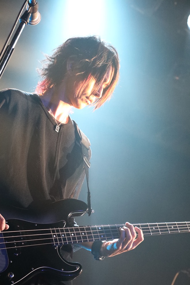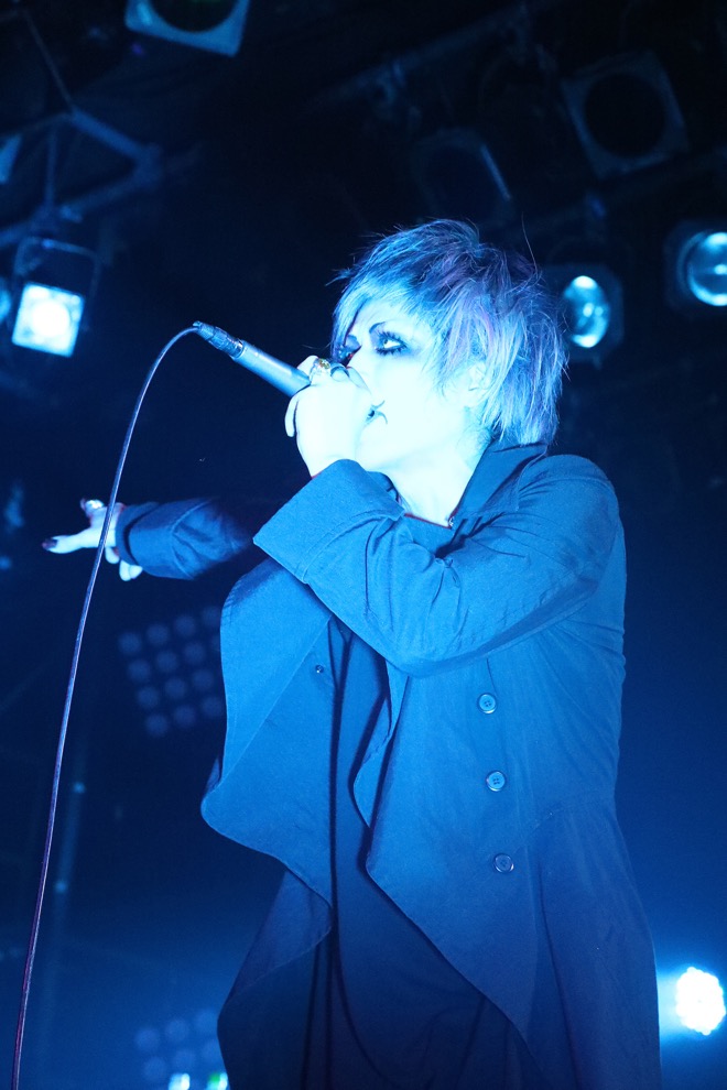 また、独自性といえばMCを極力排除したステージというのも印象のひとつだったが、「蟻塚」の直後に眞呼が「しゃべるのは苦手なんだけど…」と前置きしつつマイクを取り、出し抜けに8月のSchwarz Steinライヴにゲスト出演した時のMCエピソードを披露しようとするなど(話の途中でaieに「眞呼さん、やめときましょう」と止められていたが)、ギャップがイメージを塗り替える(いい意味で雰囲気を崩す)場面も見られ、そういうところにいまの彼らの関係性が写されているような気がして微笑ましかった。