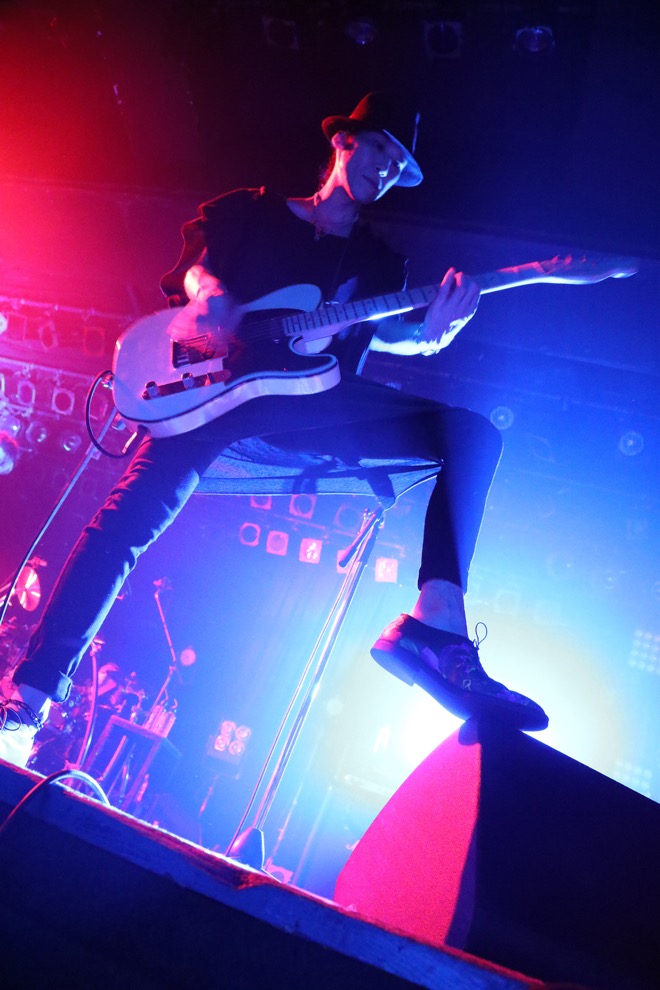 終盤はライヴでは欠かせない楽曲で固められた。イントロが鳴った途端に「おおー!」と歓声が上がった「lunch box」でフロアは再燃し、紫のフラッシュが妖しさを醸し出した「through the looking glass」で大いに頭を振ると、極め付けの暴れ曲「quo vadis」でさらに畳みかける。そしてトドメは「re:make」か!?と思いきや、そこはサラリと「sons of star fucker」で繋いで本編を駆け抜けた。