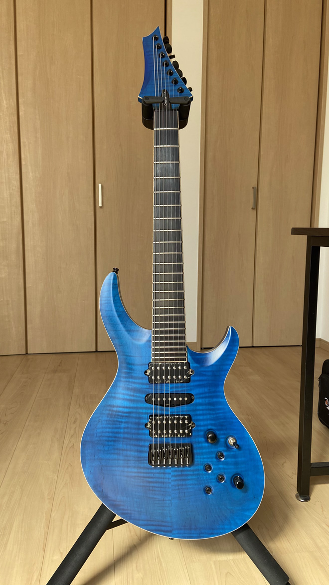ラウドロック/メタルコアを軸にしたCRAZUSと言うバンドで活動しておりますが、作曲を担当している私が尊敬するギタリストは生形真一さん、ブライアン・メイ、ニール・ショーン。ヘヴィーでタイトな単音リフがメインでも、アルペジオを交えたフレーズや豊かなロングトーンとクリーンも捨てられず、しかも7弦が必要だったので中々納得いく1本に出会えずにいました。