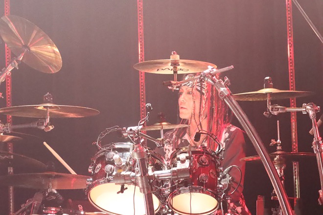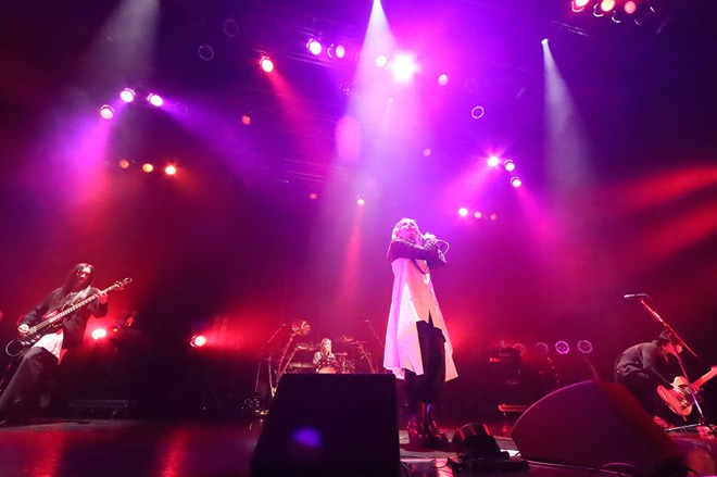 15年という月日は、ステージ上にも大きな変化をもたらした。顕著だったのは、当時は自分の立ち位置からほぼ動かなかったaieが自由な動きで聴かせたギター。一方、眞呼の存在感を際立たせるパフォーマンスも健在だ。「蟻塚」でのブラックライトを使った演出は彼ならではもの。変わらない姿、変わっていく姿を1曲1曲に込め、魅せていく。