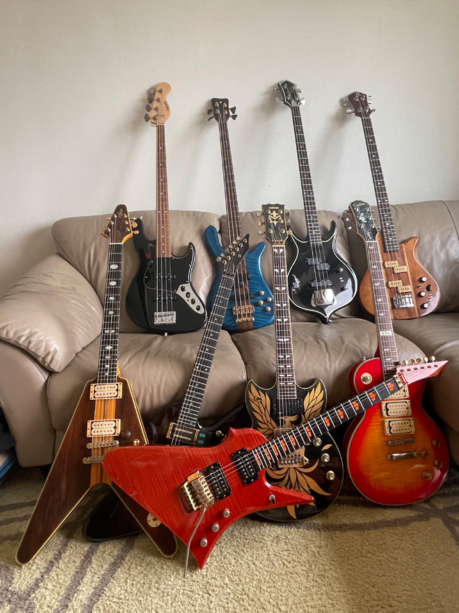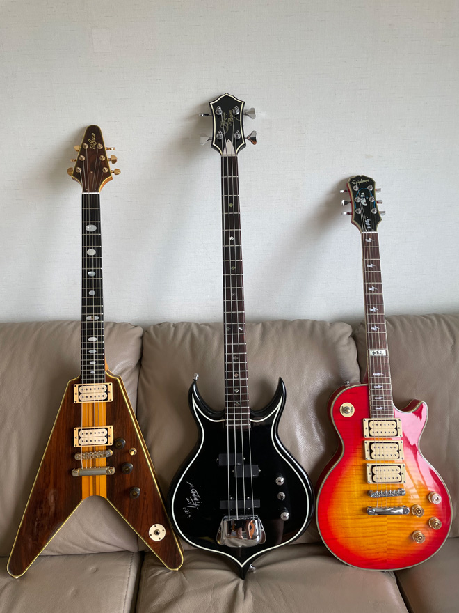 小学生高学年の時に姉貴の影響でKISS の初来日を体験し、そこから音楽に目覚めYAMAHA SG700買って定番の高中聴き~の、高校からLOUDNESS、NOVELA、BOWWOW~プログレまで追っかけまくりながら、それぞれのモデルをカタログ見ながら欲しいな~って思いを募らせ、年齢と共にオークションで探してはゲット!