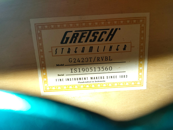 憧れのGretsch…高くて購入できず、いろいろ調べていたところ、「G2420T」という廉価モデルのGretschを発見。色も気に入り悩んだ末、購入しました。2020年購入ですが、2019年製造のようです。