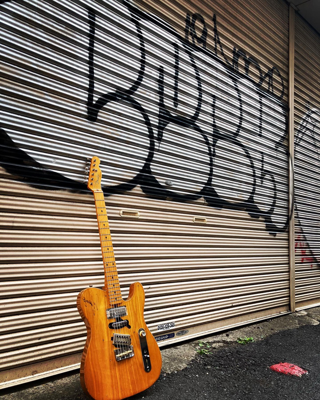 ピックアップの個性もさることながら、ピックガードが外されると一気にカスタム感が増しますよね。ノブも色味はあっているけど、目を引く組み合わせに見えます。それにしてもギター自体がカッコいいのか、写真の腕がいいのか、あるいはどちらもなのかもしれませんが、写真集から飛び出してきたような雰囲気満点ですね。どう見ても外国の香り…墨田区恐るべし。(JMN統括編集長 烏丸)