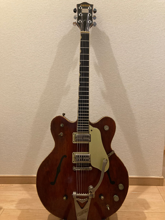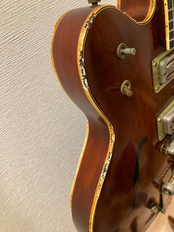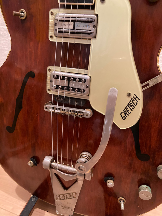 ヴィンテージ・グレッチのバインディングポロポロ現象、しかと見届けたぞ。それはなんとかしないと掃除機かけるたびに家人に怒られるやつや。でもこれも味かな。プロとして色んなシーンで使い倒すのならしっかりメンテしないといけないけど、自宅で愛でるのであれば、全てを受け入れて日々楽しんでいくのも吉ですね。良いギターを譲り受けると人生そのもののテンションがアガるよねー。(JMN統括編集長 烏丸)