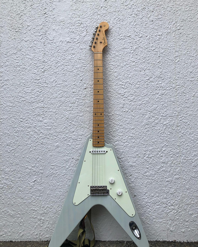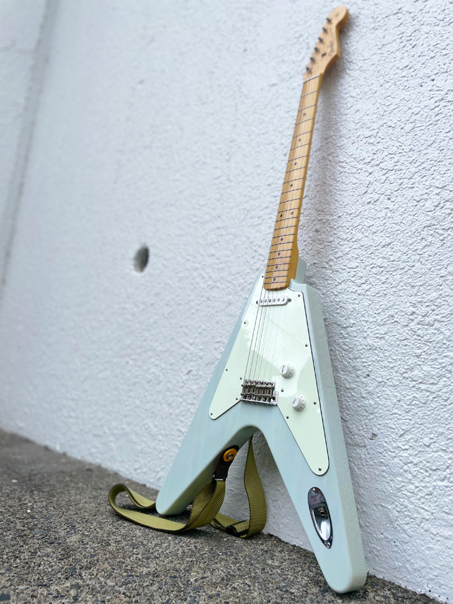 Vを好きになったきっかけは長岡亮介さんが使用されているRS GuitarworksのTEEVEEを見た時で、「Vはメタル系のギター」という自分の中で出来上がっていたイメージを「Vはカッコいいけどポップで可愛い」に塗り替えてくれました。
