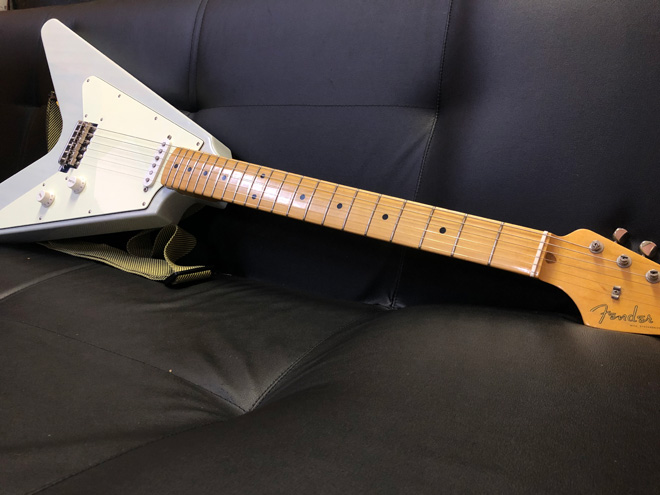 そして肝心のボディですが、ダメ元でオークションサイトを覗いてみたら「ストラトのアッセンブリーが取り付けられるように加工されたVボディ」がたまたま出品されておりました。前のオーナー様はイングウェイモデルを自作しようとしていたらしいです。こんな千載一遇のチャンスは2度とないと思い、サイトにへばりついて落札しました。