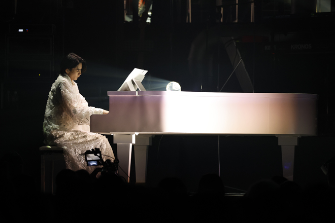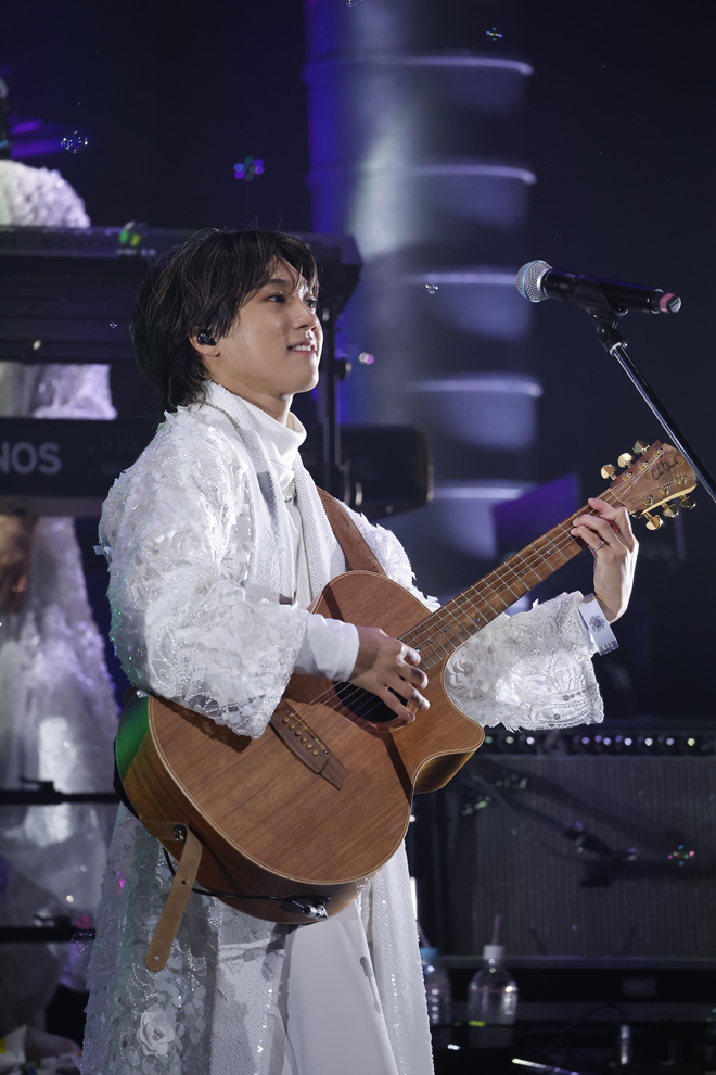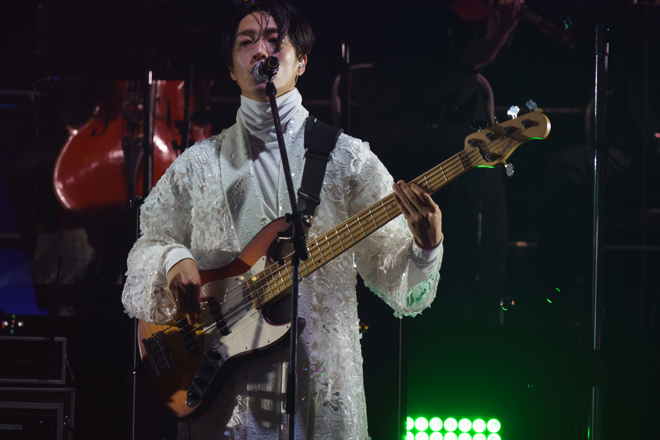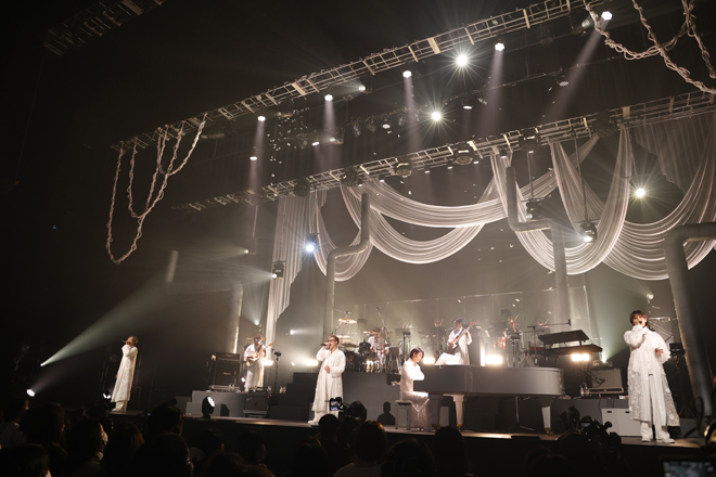 その興奮の余韻が残る中、ステージ後方にはこの日のゲストである8人編成のお茶かるストリングスが登場。メンバーは真っ白い衣装に着替え、ステージに用意された白いグラドピアノを長妻が弾くなか、6人はユニゾンでストリングスアレンジが施された「夢想人(ドリーマー)」を歌唱。シャボン玉が降り注ぐ中、お茶かるストリングスやメンバー同士、客席、生配信を見ている視聴者にもカメラを通してアイコンタクトをかわしながら、とびきりの笑顔で「Sabãoflower」を届けたあとは、ストリングスが加わったことでパワーが増し増しになった「27」をアクト。こうして本編を締めくくった。