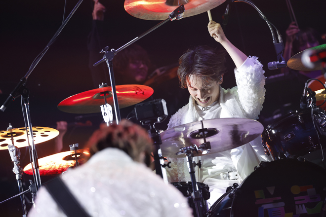 まだまだ続くボーイズグループ戦国時代。なんとか形になってるなというレベルを遥かに超えた、バンドとダンスのクオリティー。それを、早着替えならぬ、早切り替えで観客に披露するステージパフォーマンスは超画期的。楽器を弾きながら、メインボーカルは7人全員が次々と入れ替わり、そこに本格的なラップまで加わる。7人全員が4Fまである会場全域に散らばり、通路を移動しながら歌うというとんでもなくエンタメに振り切った演出も、なんなくやってのけるスピリット。もうなにもかもが衝撃的。そんな素晴らしい刺激的な体験をした夜だった。