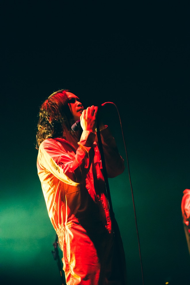 ライヴ中盤、「DESIRE」から勢いよく走り続け、憂いの感情あふれる逹瑯のヴォーカルが重厚なアンサンブルと絡み、ドラマチックな世界観を示した。アンビエントな導入からの「壊れたピアノ」では、ややスローなハーフシャッフルのリズムの中で大人の色気漂う歌唱を響かせる。「frigidity」ではドラムの4つ打ち、ギターカッティング、グルーヴィなベースラインとダンサンブルな空間が生み出され、ライヴの熱気はさらに上昇。「踊れる?」という逹瑯の声に速攻で反応したオーディエンスは体を揺さぶりライヴ一体感を醸し出す。立て続けに、絶妙なキーボードプレイから走り出す「surrender」へ繋がり、ストーリー性のあるライヴ構成を提示した。ピアノとバイオリンの音色が美しく交差するイントロの「bloom」では、逹瑯は優しく歌い出し、ゆっくりと丁寧に、言葉を歌に乗せて重ねる。激情も憂いも、様々な感情をダイナミックに歌い上げるヴォーカリスト逹瑯のポテンシャルはどこまでも広がる。