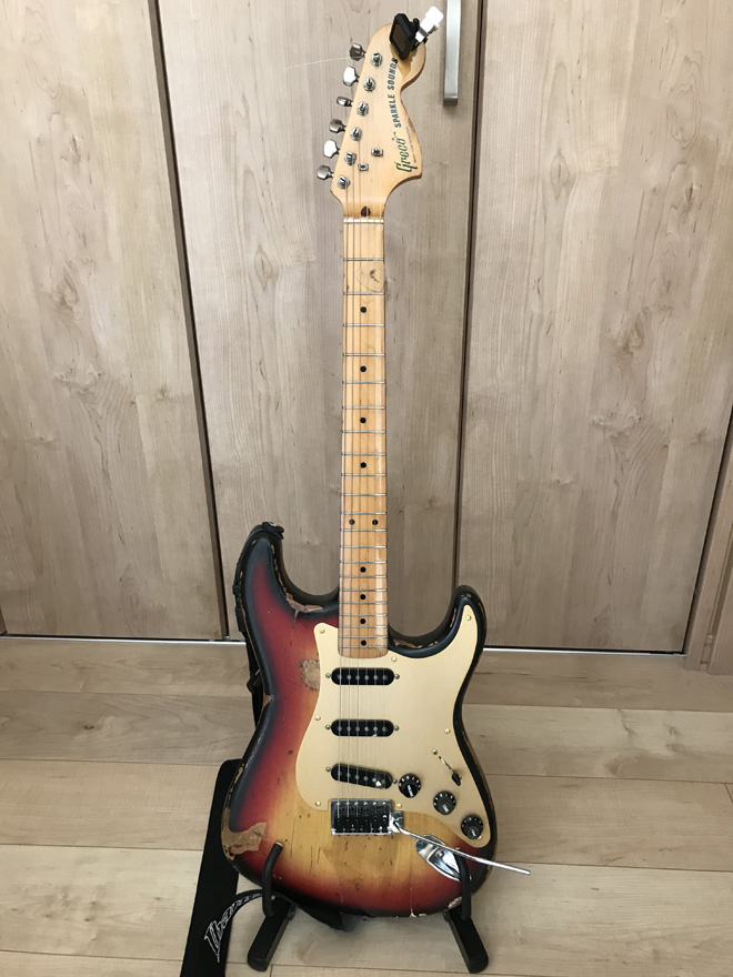 見た目やサウンドは敬愛するギタリストのモデルに寄せております。改造前はパリっとしたストラトの音だったのですが、改造後はレンジのバランスも良くなりストラト独特の空気感が強調された優等生の音になりました。