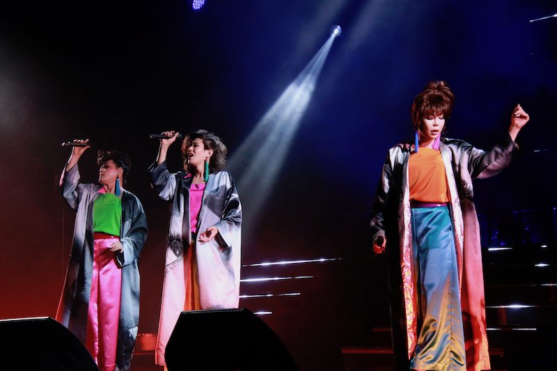 アフリカンテイストのダンストラックが場内に響いたアンコールではツアーTシャツに短パン(和恵はスリムパンツ)に着替えた3人が階段を使ってひとりひとりポージング。ループするリズムが心地いい「BAD PARADISE」で年齢を超越したキュートなパフォーマンスで場内を悩殺した。