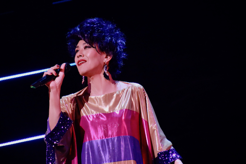 大阪国際交流センター 大ホールを皮切りにスタートした本ツアーの東京公演は5月18、19日のEX THEATER ROPPONGI 2デイズ。ゴージャスなライトアップが似合う星屑スキャットにピッタリの会場だ。2日目はあいにくの雨風に見舞われたが、天候など吹き飛ばす煌びやかなショーを見せてくれた。