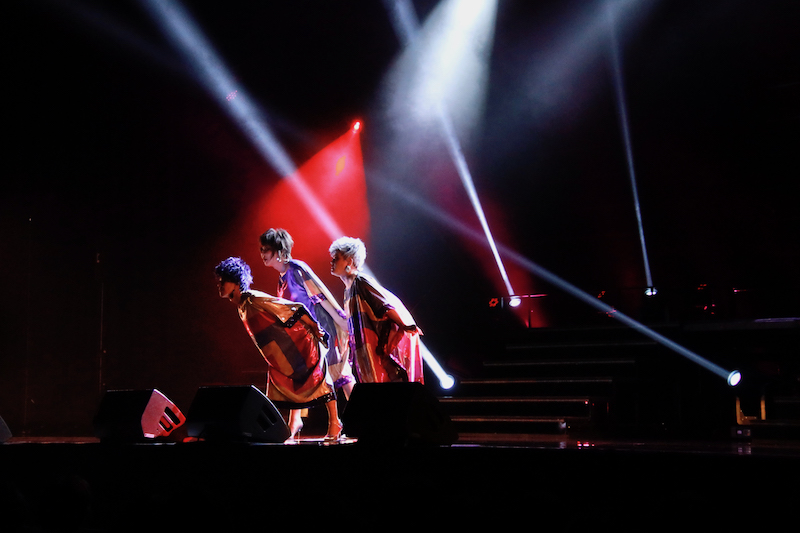 まばゆい照明がステージ全体を覆い、「Overture」が鳴り響き、コンサートは新曲「FREAK SHOW」で幕を開けた。ステージセットの上部に姿を表した3人は色違いの鮮やかなワイドパンツの衣装に身を包み、ファンキーなビートと息がピッタリのハーモニーで観客を星屑スキャットの世界にいざなっていく。階段を降り、セクシーさと疾走感が畳み掛けるナンバー「ANIMALIZER」は3人の絡み合うボーカルも刺激的で拍手と声援が沸き起こった。