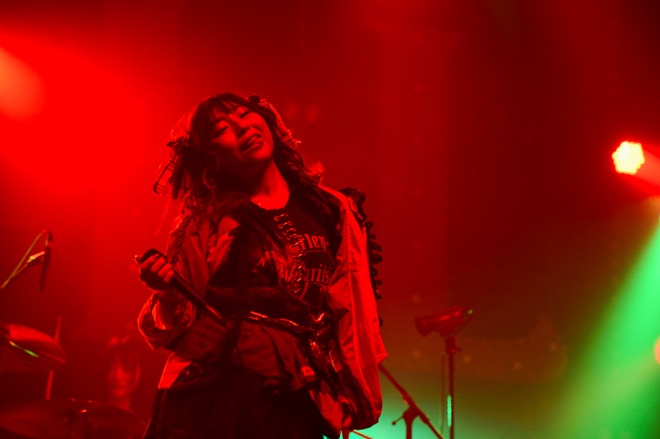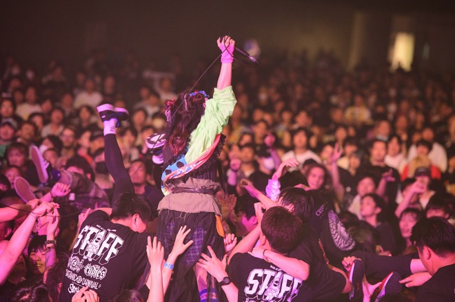 これからタイアップをガシガシ取るぞ!という貪欲な姿勢を表明した「Want to TIE-UP」を経て、海外ファンを巻き込んでMV回数が330万超えでバズり中の「お先に失礼します。」を披露。和的センスとラウドを接合させた異次元のサウンドに会場も大興奮。ラストの「センチメンタル☆ヒロイン」を含む全7曲。新種の轟音ミクスチャーにより、彼女たちは幕張メッセに深すぎる爪痕を残したのであった。