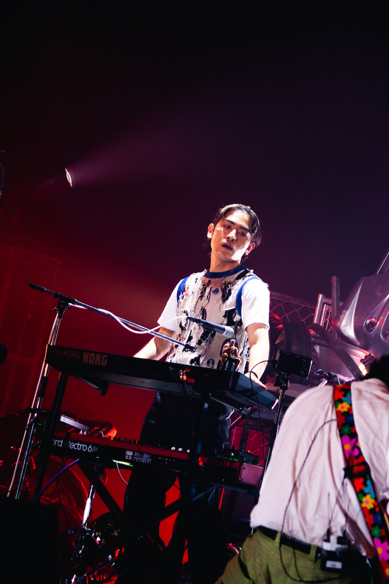 とりわけ、メロディを担うYuki Hasebe(G)とDaiki Chiba (Key)の存在感は際立っていた。特にChibaの手数の多さはライブを通して特筆すべきポイントだったように思う。「cranberry」から「Funky GUNSLINGER」への繋ぎは、AORや音楽ジャンルとしてのフュージョンを包括しながら土臭いサザンロックへと鮮やかな移り変わりを表現していた。中でも「cranberry」のパフォーマンスは、2人の活躍がないと成立しなかっただろう(無論すべての楽曲がそうなのだが)。