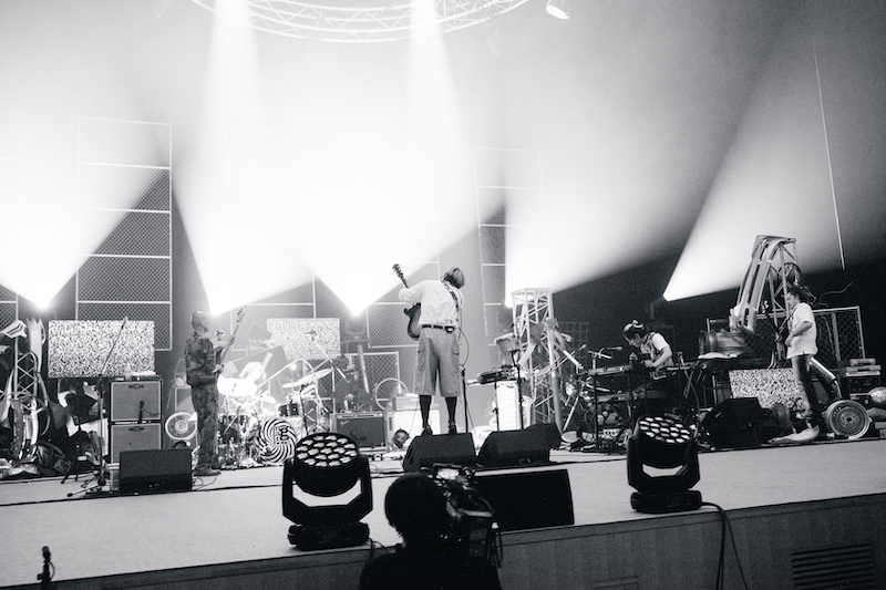 そして、オンライン上で配信も行われたラスト3曲。「Balmy Life」、「HORN」、「Fire Brain」の流れは、ここまで散々踊り狂ってきたオーディエンスの体力を根こそぎ奪う構成である。もはや達人の居合切りとか、そういったレベルの必殺技になりつつある「Fire Brain」は、メンバーにとってもラストスパートだ。彼らにも間違いなく疲労が蓄積しているはずなのだが、各パートの音の抜き差しが寸分のズレもなくハマっていく。この曲はライブを経る度に異なるアレンジが施され、同じ“居合切り”でもポーズやタイミングが大きく違う。それが実にスリリングで、至高のライブ体験をもたらしている。