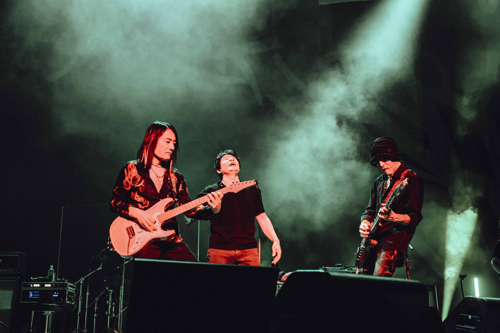 気迫あふれる「自分じゃないか」、壮大な歌の世界が広がる「地球という名の都」、強い意志の宿った「憲兵も王様も居ない城」、観客を抱きしめていくような「LOVE SONG」など、バンドとの固い絆が歌の世界をより強固なものにしていると感じた。心地よい風のような爽快さが魅力的な「風の引力」、深遠にして神秘的な「青い海になる」、過去の中にある希望を今の瞬間に蘇らせていくような「C-46」、大歓声の中での「はじまりはいつも雨」、渾身の祈りの歌「しゃぼん」などなど、起伏に富んだ構成で前半終了。休憩中のメンバーとのやりとりをスマホで撮影OKというASKAからの粋な計らいもあった。