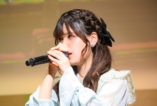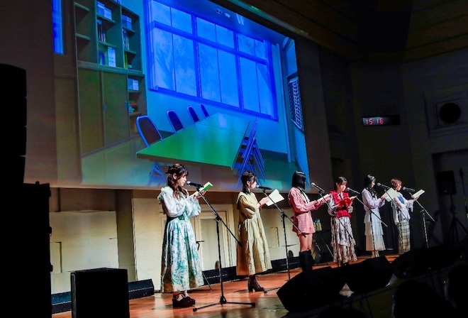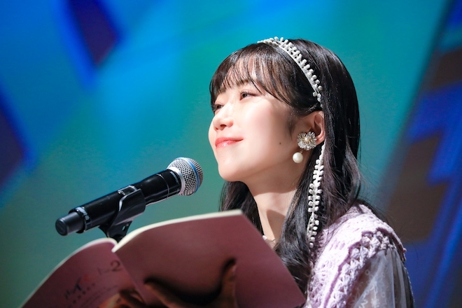 2曲歌い終えると、ステージにはスタンドマイクが設置され、朗読劇を披露。前回イベントに引き続き、原作を担当している山中拓也書き下ろしによる物語で、昼の部のタイトルは「わたしの知らないわたし」、夜の部は「わたしの知らないあなた」。昼の部は繭森結を中心とした物語が展開され、人が生まれ持った色と似合う「パーソナルカラー」診断をきっかけに、自分を知る第一歩をそっと踏み出す物語が紡がれた。夜の部は、宮崎閏と熊井弥子の関係性にスポットが当たる内容となっており、相手のことを知りたいと思う弥子の心情を、間をたっぷりと使いながら丁寧に演じきった。