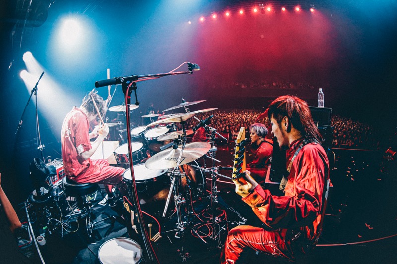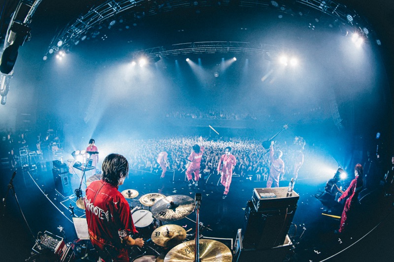 ▲架神(Vo: DEXCORE)/ミヤ(G: MUCC)/SAKI (G)/Masa (B: NOCTURNAL BLOODLUST)/Allen (Dr: MUCC Support)/SORA (Per: DEZERT)/Bikky (Per: CHAQLA.)/Sacchan (MacBook Pro: DEZERT)